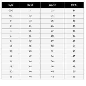 Sizing tips: Every designer cuts their dresses differently & according to their size chart. Please measure yourself (in inches) before ordering & follow our size chart (pictured under the main dress picture). If you are in between sizes or unsure of the fit, choose a size up, as it is easier for your seamstress to take in rather than out. Please refer to the size chart in our images section.