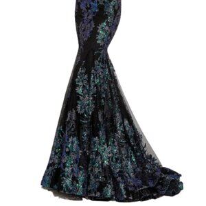NWT Jasz Couture 7403 Floral Pattern Prom Dress Black Multi size 2 and 4