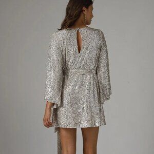 NWT | Jay Godfrey Maggie Sequin Mesh Bateau-Neck Flare-Sleeve Belted Mini Dress