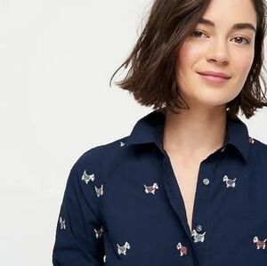 NWT J.crew Navy Blue Perfect Shirt with Embroidered Scottie Dogs Slim Fit 14