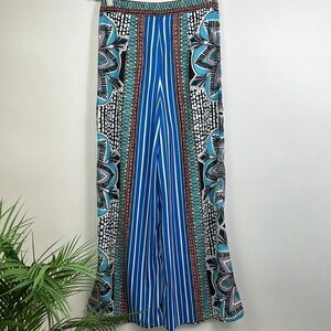 NWT Jealous Tomato Wide Leg High Waist Palazzo Pants Colorful Resort Tribal Medium Stripes Blue Black