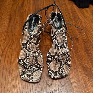 Stylish snakeskin pattern with lace-up design. Elevate your look effortlessly. Brand new with tags never worn!