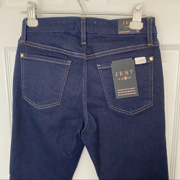 Features: Dark wash jeans made by 7 for all Mankind’s other brand, Jen 7. Frayed and raw edge at the ankles. Super cute - perfect for all occassions! Very feminine and casual. Mid waist.