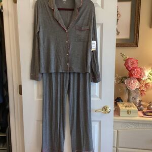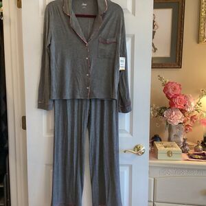 NWT. Jenni Brand Women’s Size S 2 PC Pajama Gray with Maroon Piping
