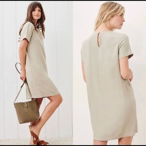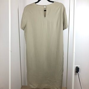 Lightweight Italian crepe in a subtle hue adds a grace note to a staple dress cut in a t-shirt silhouette.