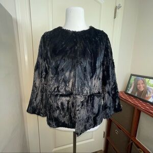 Jennifer Lopez Faux Fur Jacket Black Tie wrap features hidden clasps for closure and 3/4 length sleeves. Lightweight, soft and elegant!
