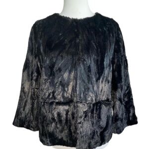 NWT Jennifer Lopez Short Faux Fur Jacket Black Tie Sz M