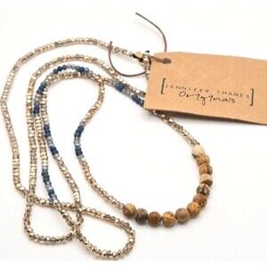 NWT Jennifer Thames Original Beaded Necklace Matte Jasper and Faceted Glass 34"