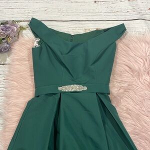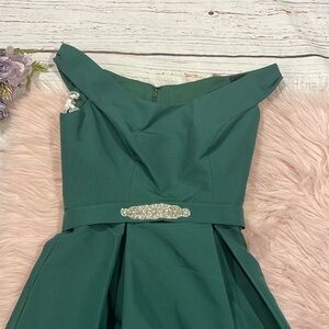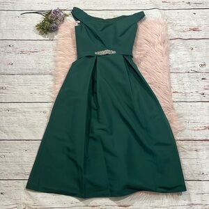 New with tags Jenny Packham Mikado off shoulder midi bridesmaid hunter green colored dress