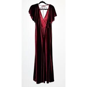NWT Jenny Yoo Marin Velvet Flutter Sleeve Gown Women's Burgundy Size 12