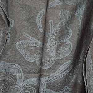 NWT Jerusalem Teal Floral Butterfly Patterned Cashmere Shawl with Fringe