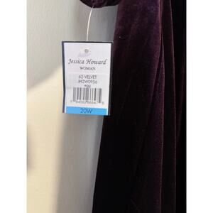 NWT Jessica Howard 20W eggplant Velvet Illusion dress insets on sleeves & hem.