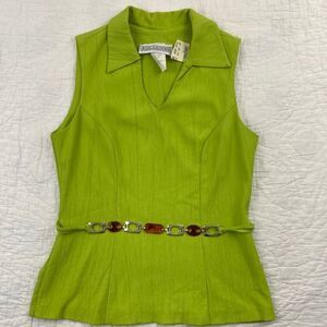 NWT Jessica Howard Deadstock V-Neck Collared Belted Blouse size 8