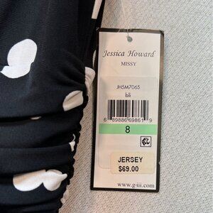 NWT Jessica Howard Womens A-line Midi Dress Size 8 Missy Black White Polka Dots