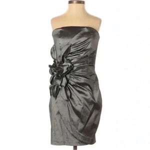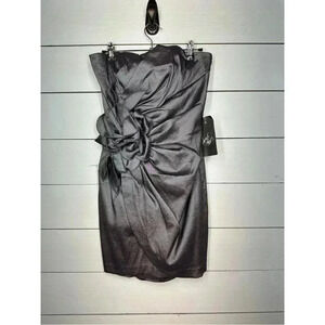 NWT •Jessica McClintock Vintage •Sz 8 (M) •Gunmetal Silver Mini Strapless Dress
