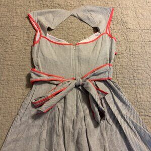 New with tags size 6 Jessica Simpson vintage style 1950's pinstripe dress with pink detailing around bust and cute bow in back. Perfect for a 50's style Halloween dress or just for any of those late fall or early spring weddings!