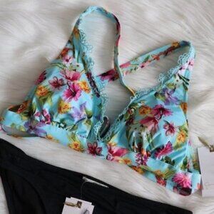 NWT Jessica Simpson Black Blue Floral Printed Bikini Set Size Small