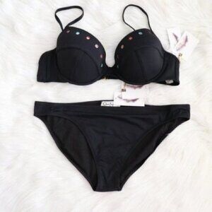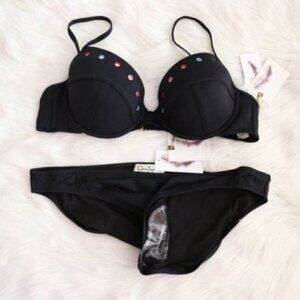 NWT Jessica Simpson Black Bralette Sexy Bikini Set Size Medium Bathing Suit
