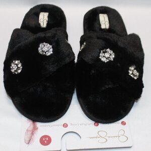 NWT Jessica Simpson Black Fur and Rhinestone Memory Foam Slippers
