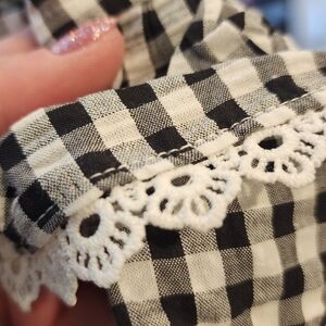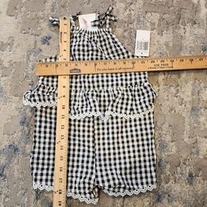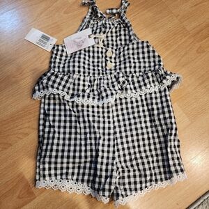 NWT Jessica Simpson Black white gingham Ruffle romper. Crochet lace. Size 4.