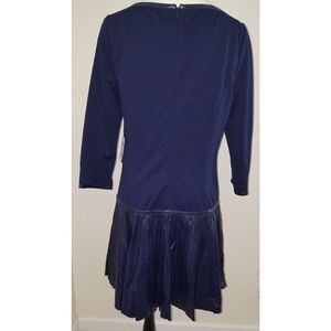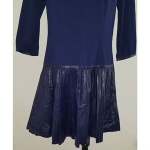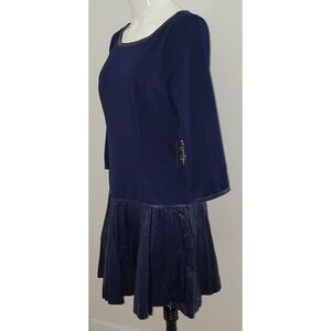 NWT Jessica Simpson Dress 8 Evening Blue Faux Leather Micropleating Drop Waist