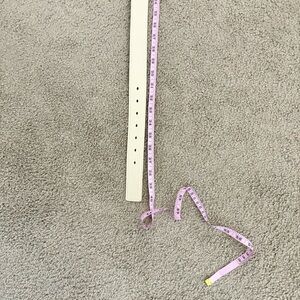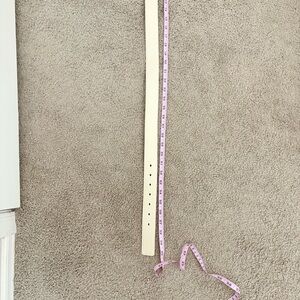 Enhance your outfit with this elegant cream belt featuring a stylish gold buckle. Perfect for adding a touch of sophistication to any ensemble.