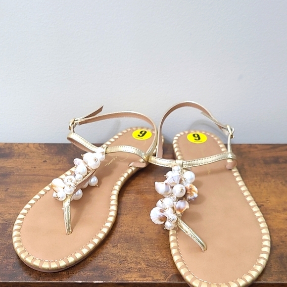 NWT Jessica Simpson Gold Beliva Sandals with Seashell & Pearl Details size 9