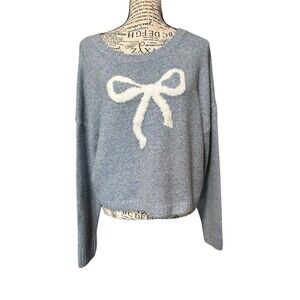 This NWT Jessica Simpson ladies' crew neck sweater in XL size is a whimsical and fairy-like piece perfect for various occasions such as events, parties, or casual wear. The sweater features a tight-knit design with a bow pattern and soft accents, making it lightweight, stretchy, and breathable. The blue color and bohemian theme give it a unique and charming look, while the classic fit and pullover style make it a versatile addition to your wardrobe. Made from polyester and nylon, this sweater is machine washable and suitable for all seasons.