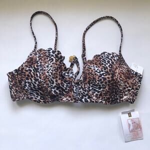 NWT Jessica Simpson Leopard Scalloped Edges Swim Top