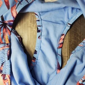 Jessica Simpson lilac floral bikini set, size M. Smocked top with tie back, high-waisted bottoms.