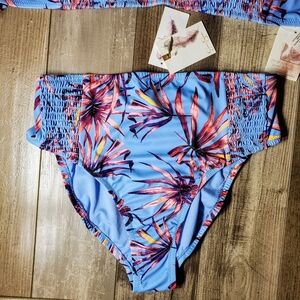NWT Jessica Simpson Lilac Tropical Floral High Waisted Smocked Bikini Set Medium