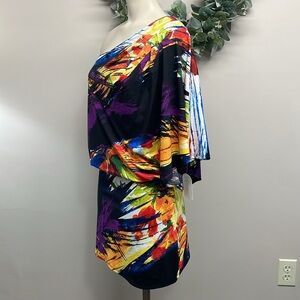 NWT Jessica Simpson One Shoulder Draped Mini Dress Multicolored Abstract S