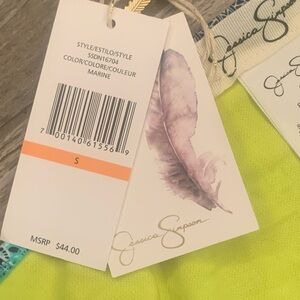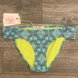 NWT Jessica Simpson Small Shirred Hipster Bikini Bottoms S Marine Blue Green