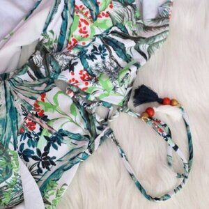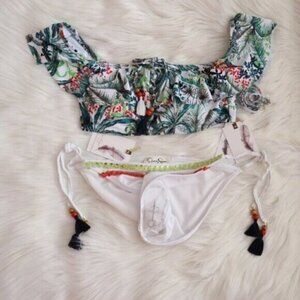 NWT Jessica Simpson Tropical Printed Bikini Set Size XL White Green Bathing Suit