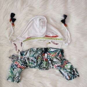 NWT Jessica Simpson White Green Tropical Print Bikini Swim Set Size XL