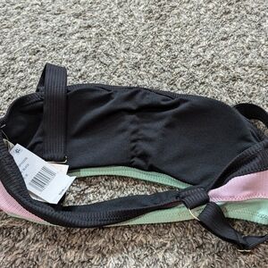 NWT Jessica Simpson black pink green ribbed square neck bikini top M