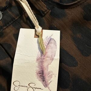 NWT Jessica Simpson Kiss Me Super Skinny leopard print pants. They are a size 27. Measurements and materials are shown in the pictures. Close up shows true color of the pants. Pair with black heels or flats to create the look you want.