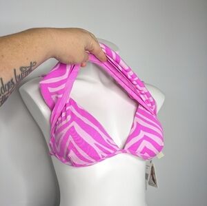 NWT Jessica Simpson pink zebra slouchy drapes bikini top S.