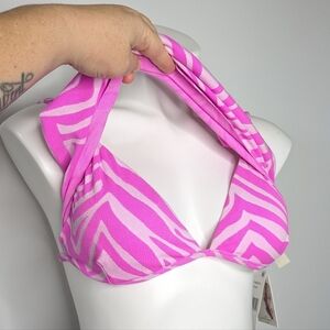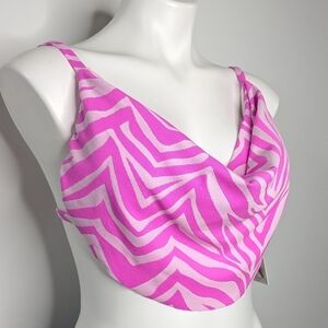 NWT Jessica Simpson pink zebra slouchy drapes bikini top S.