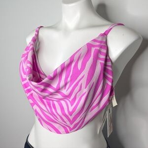 NWT Jessica Simpson pink zebra slouchy drapes bikini top S