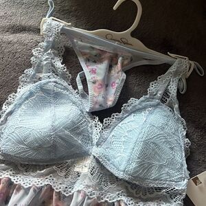 Add a flirty element to your collection with this lacy set including a nightie and matching thong.