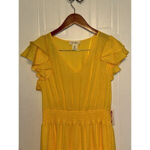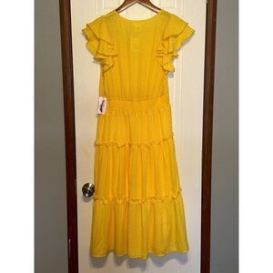NWT Jessica Simpson Yellow Ruffle Smocked Waist Maxi Dress Size Large
