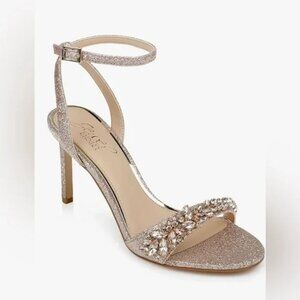 NWT Jewel Badgley Mischka Dallyce Glitter Open-Toe Heels W Rhinestone Strap NEW