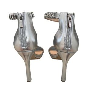 NWT Jewel Badgley Mischka Silver 4” Strappy Heels