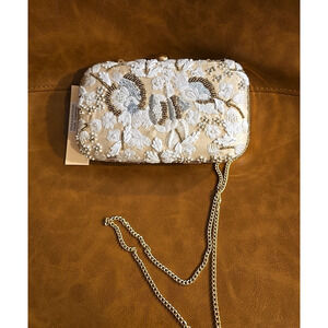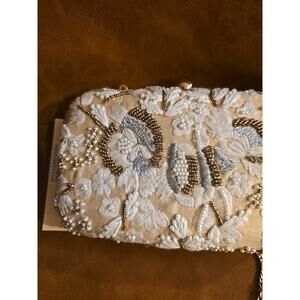NWT Jewel by Badgley Mischka Cream Embroidered Floral Beaded Shoulder Clutch Bag