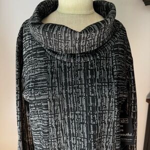 NWT Jill Alexander Creation Retro Style Cowl Neck Black Patterned Tunic Sz S