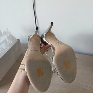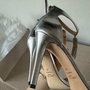 NWT Jimmy Choo Viola 100 Metallic Nappa Leather Crystal Chandelier Ankle Strap
