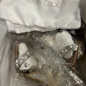 NWT Jimmy Choo ‘Viola 110’ Sandal Heels - Wedding Crystal Ostrich Feather 36