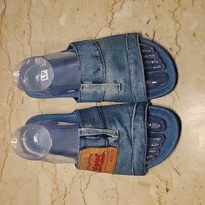 NWT Jinrui Fuliao Blue Jean Denim Slip-on Sandals Slides Unisex 8.5-9W | 6.5-7W