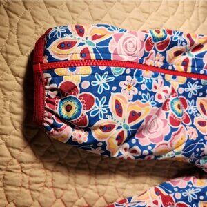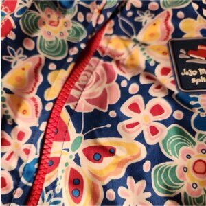 NWT Butterfly and flowers pattern. Waterproof, windproof, mitten loops, peaked hood, fold over cuffs, two long zippers for easy dressing and fleece lining.